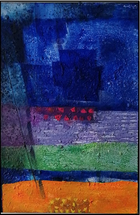 Sometimes abstract, sometimes figurative, a permanent search for the harmony of the warm colors of sunsets and the deep blues of the cosmos with more sober hues of the earth and plants runs through all of his works.